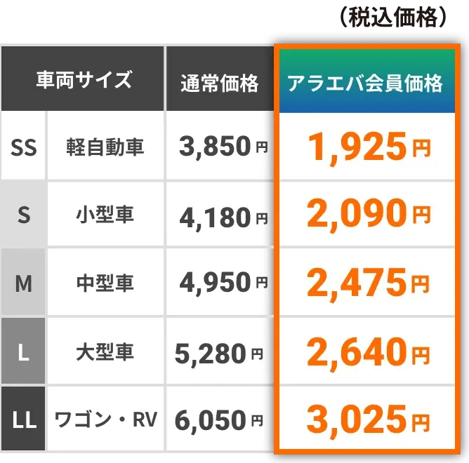 アラエバ会員の方は「毎月1回分の洗車」は、毎月のサブスク料金に含まれておりますので、