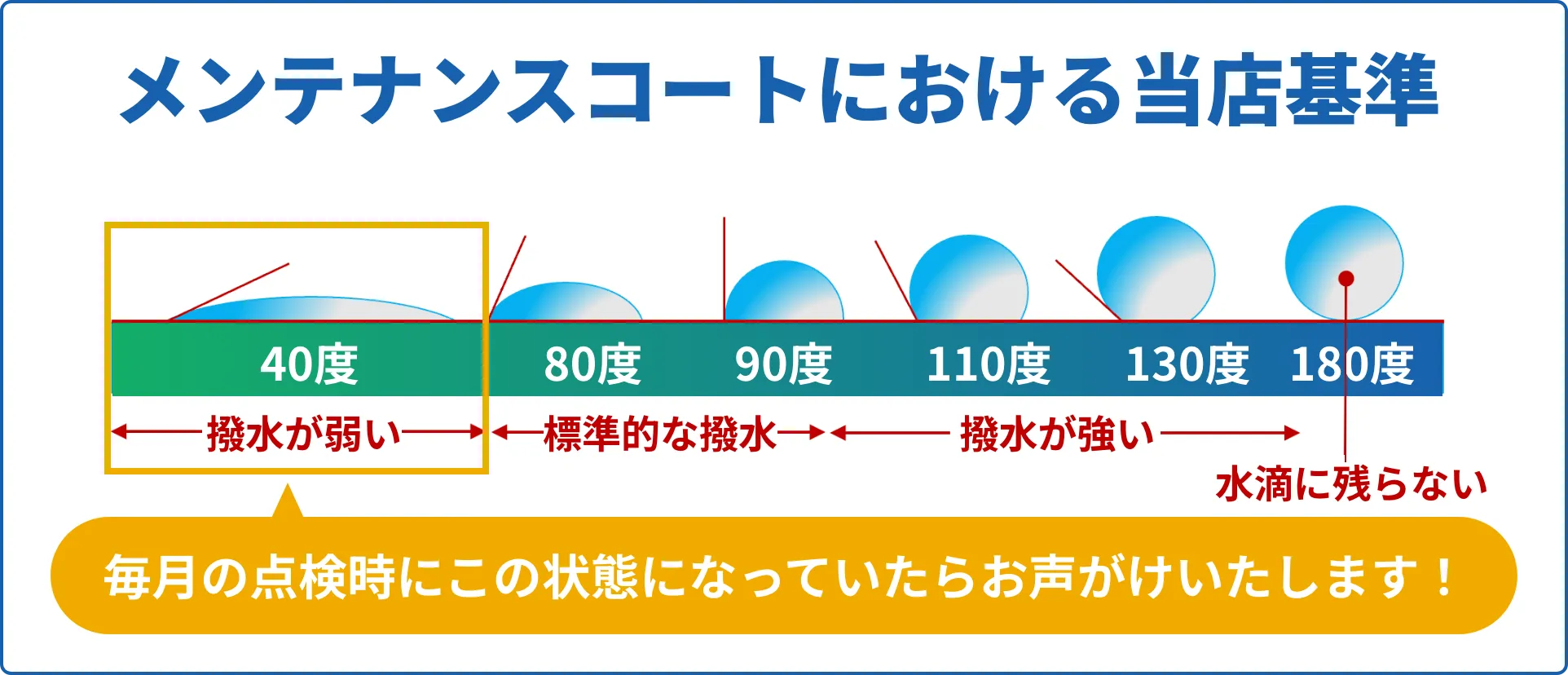 アラエバ会員の方は毎月の点検の際、撥水具合が「当社基準を下回っている」場合において、