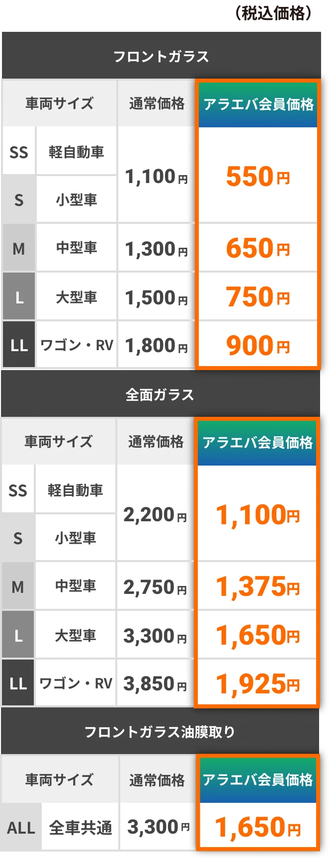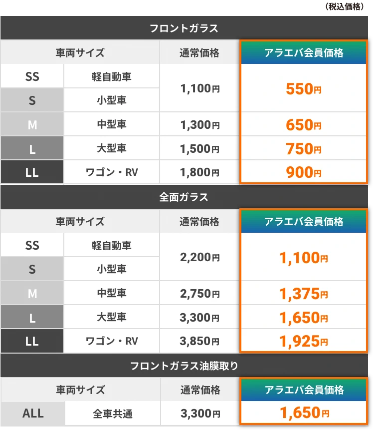 おクルマのキレイを保つ方法は多岐に渡りますが、当店では厳選したプランをご用意いたしました。アラエバ会員限定のお得な価格で受けられる便利なサービスをご活用ください。